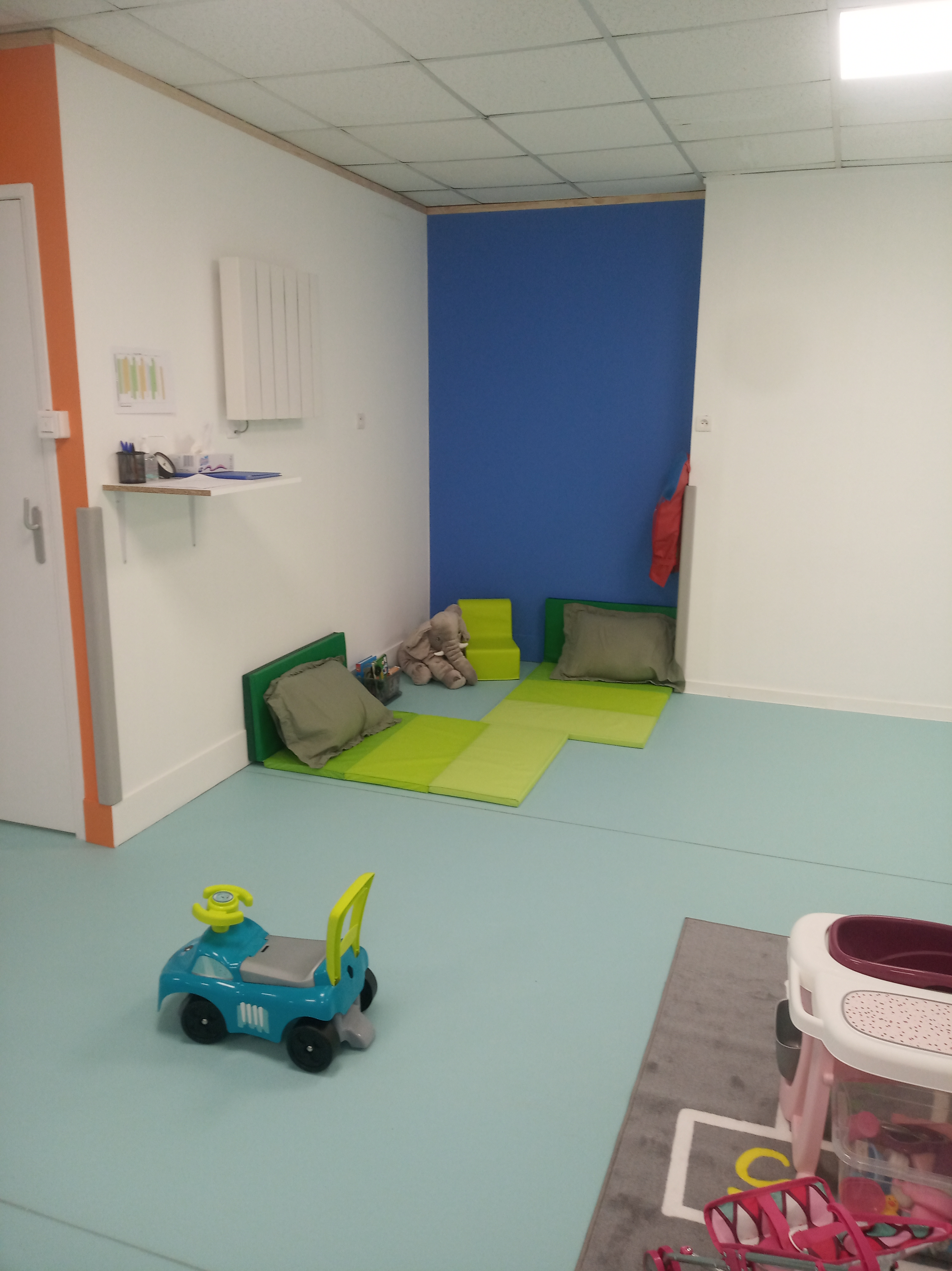 La pièce de vie de 57m² est orientée au sud, elle bénéficie d’une lumière naturelle. Le grand espace permet des échanges multi-âges mais aussi des zones plus spécifiques. La structure est située à 350 mètres de l’espace de jeux extérieurs Blaise Pascal.