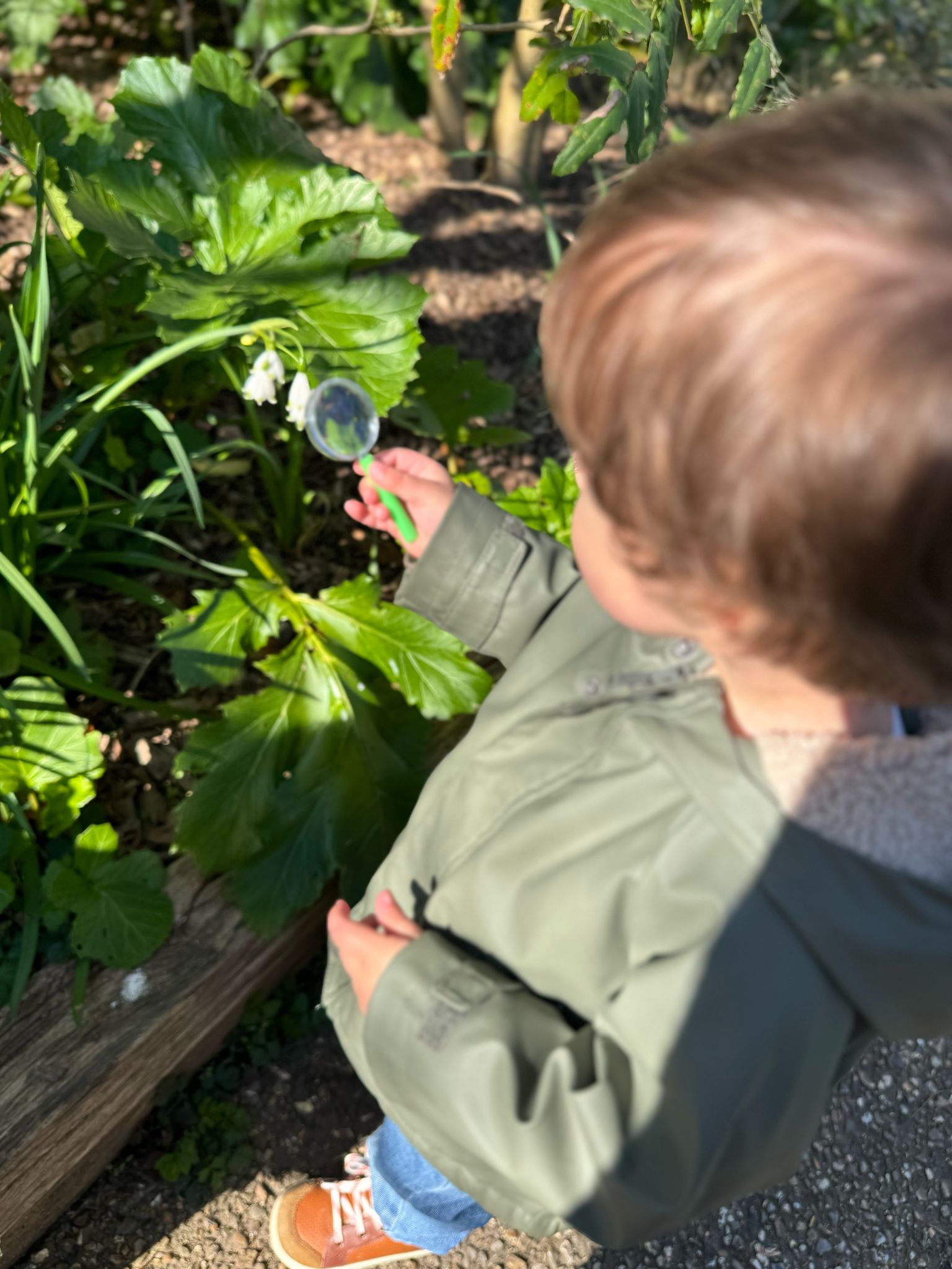 Un espace extérieur est à disposition à 50 mètres. Les enfants sortent plusieurs fois par semaine, tant pour jouer que dans le cadre du rapport à la nature.
